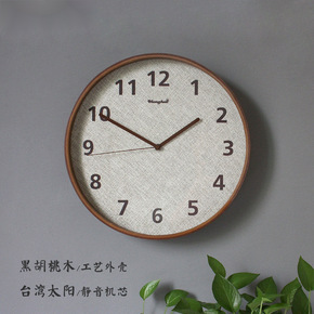 新中式实木家用静音客厅挂钟北欧简约创意时尚亚麻艺术...