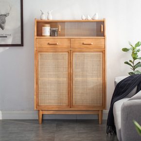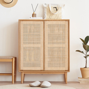 家用鞋柜柜玄关门厅现代收纳实木简约柜藤编单门餐边北...