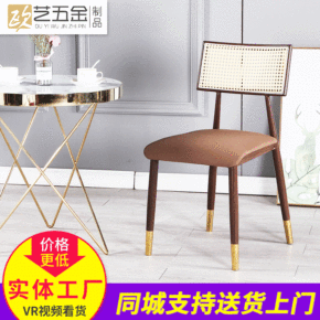 北欧铁艺藤编椅子ins网红家用靠背餐椅 简约现代咖...