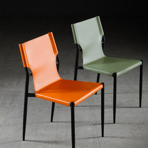 北欧复古工业风皮革餐椅网红铁艺书桌靠背椅家用餐桌椅...