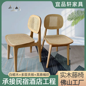 北欧真藤家具藤编椅日式民宿餐厅休闲奶茶店实木餐椅藤...