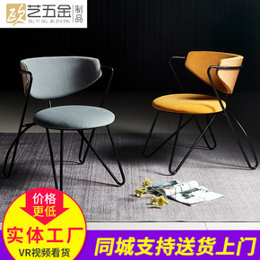 简约设计藤编靠背餐椅北欧铁艺家用软包椅子酒店餐厅咖...