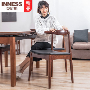 北欧实木餐椅家用休闲黑色凳子轻奢创意椅子酒店咖啡靠...