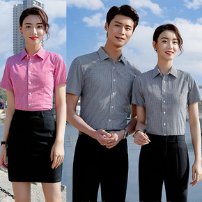 格子衬衫男士短袖夏季薄款职业商务正装工作服工装衬衣...
