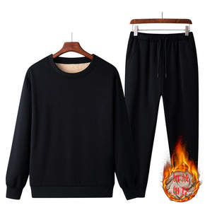 2020羊羔绒加绒加厚卫衣男套装运动休闲...