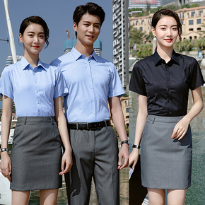男女衬衫同款夏装短袖4S店工装职业正装定制衬衣上班...