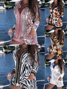 2021欧美跨境新品休闲套装 印花衬衣纽扣长袖上衣...