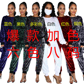 8761欧美亚马逊跨境秋冬新款居家亮片聚会长袖铅笔...