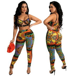 现货新款跨境欧美女装亚马逊爆款宽松印花长袖休闲套装...
