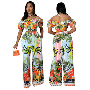 欧美风外贸女装2022夏季新款印花长袖裹胸性感抽皱...