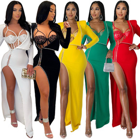 K9946 亚马逊独立站 跨境欧美女装 链条拼接绑...