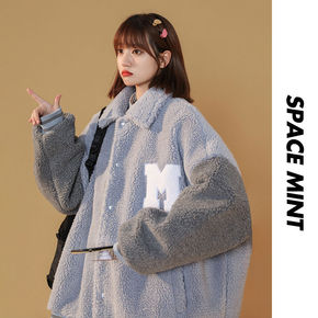 羊羔毛棉服女盐系复古棒球服棉袄冬季宽松加厚潮流外套...