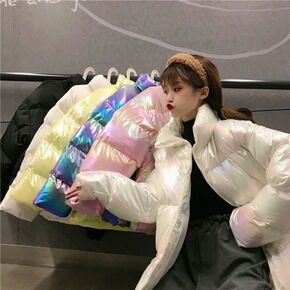 实拍炫彩亮面羽绒棉棉服女短款2021年冬季新款加厚...