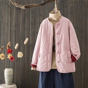 2020年冬季新款棉麻棉衣文艺范圆领单排扣复古宽松...