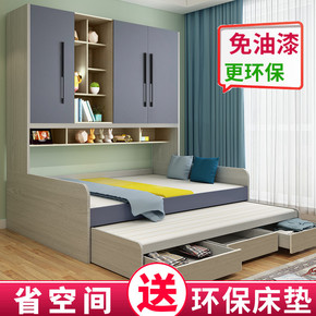 榻榻米床衣柜一体床板式床儿童床单人储物现代简约小户...