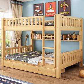 榉木儿童上下床双层床两层床实木子母高低床二层拆分上...