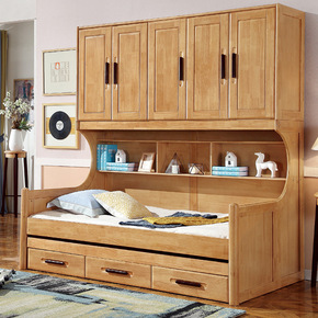 高低床带书桌实木衣柜床儿童床上下铺双层床多功能组合...
