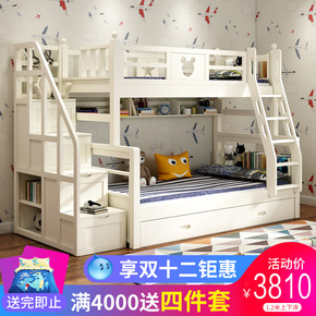 北欧家具板式现代多功能组合床上下高低储物床儿童双层...