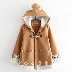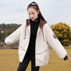 2020冬装新款 日系小清新加厚羊羔绒保暖卡通刺绣...