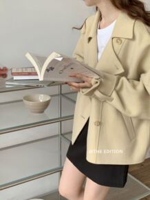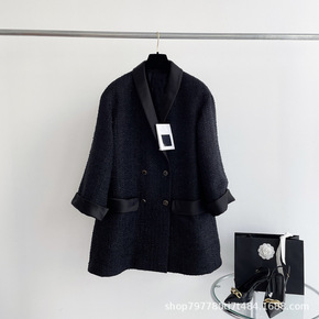 深圳南油女装~22S春夏款小香风翻领双口袋毛呢外套...
