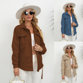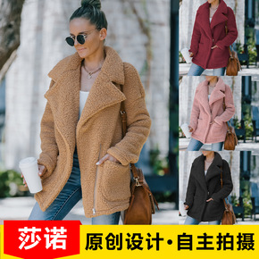亚马逊2021秋冬季欧美新品中长款大衣时尚长袖开衫...