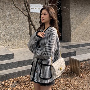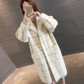2021冬新款韩版格子毛呢外套女小个子休闲西装中长...