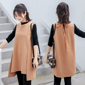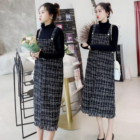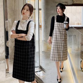 孕妇装2022秋冬新款格子毛呢背心裙+打底衫两件套...