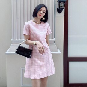 2021冬季新款时尚高档大摆灯笼袖千鸟格拼接粗花呢...