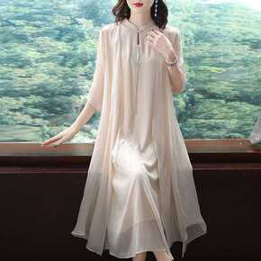 2022春装两件套汉服中长裙中国风女复古气质旗袍改...