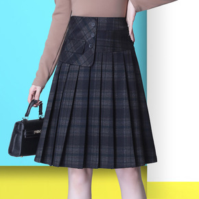设计感格子半身裙女秋冬中裙2021高腰A型小摆裙显...
