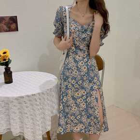 法式碎花连衣裙子女装夏装2022年新款夏季潮小个子...
