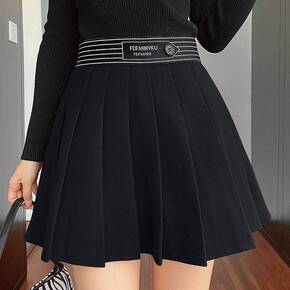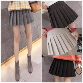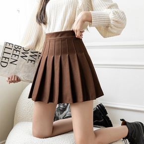 伞裙秋冬2021秋冬新款毛呢百褶裙高腰显瘦半身裙字...