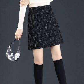 格子毛呢半身裙女秋冬2021年新款高腰短裤裙包臀a...