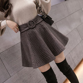呢子短裙子2020秋冬新款韩版百搭显瘦高腰格子毛呢...
