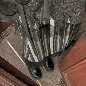 2021秋冬新款黑色显瘦气质女裙毛呢半身裙拼接蕾丝...