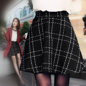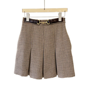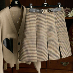 上身再美一个篙阶 腰间马蹄扣立体裥褶厚实格子毛呢半...