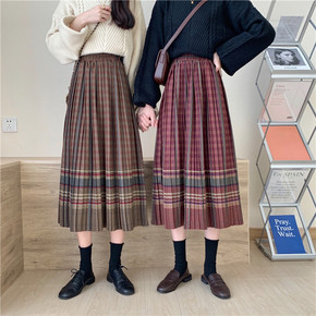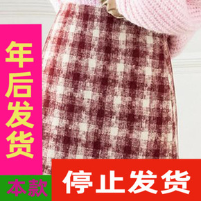 红色格子毛呢加厚包臀短裙英伦学院风秋冬外穿格纹一步...