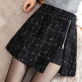A字裙毛呢字裙秋冬新款鱼尾裙短裙高腰显瘦木耳边短裙...