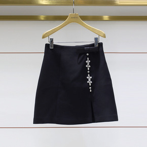 2021冬季新休闲高腰A字开叉蝴蝶结水钻毛呢短裙女...