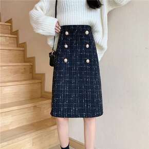 香榭丽大道 秋冬新小香百搭高腰设计感显瘦中长款半身...