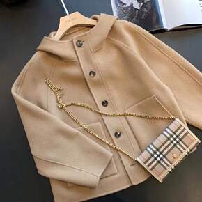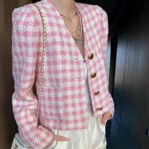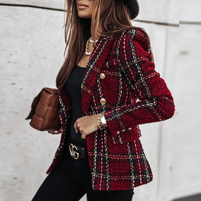 新款格子小西装双面羊绒大衣女短款韩版宽松复古英伦羊...