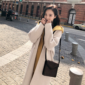 韩版法式圆领重工毛边拼接别致单排扣宽松口袋粗纺花呢...