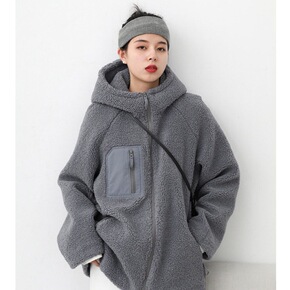 390 仿羊羔毛连帽厚外套 女2021冬季...