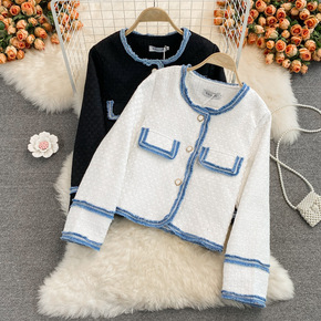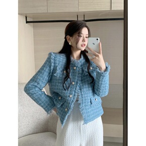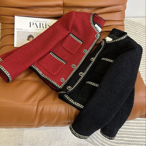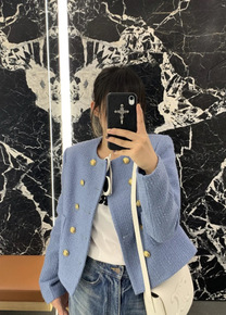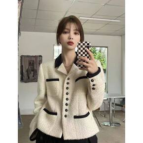 韩国chic法式气质编织包边设计宽松别致单排扣长袖...