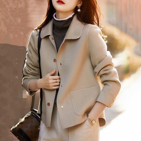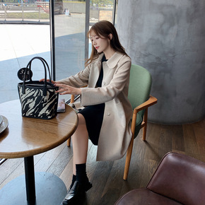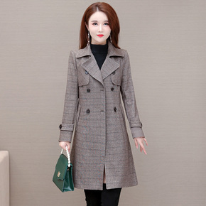 加厚羊毛外套秋冬款女装中长款双排扣西装领毛呢外套气...
