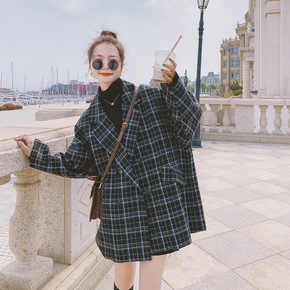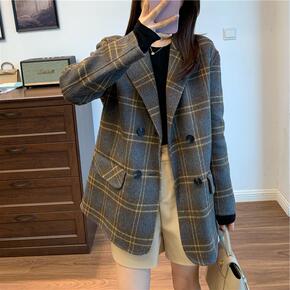 欧洲站宽松大码毛呢外套2021秋冬新款时尚格纹呢料...