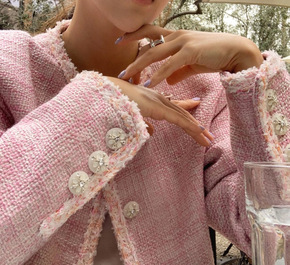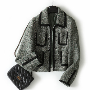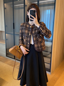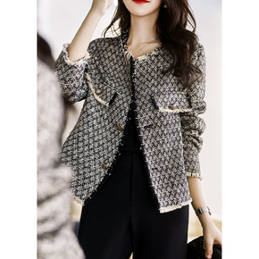 2021秋冬重工 韩囯琎口料 粗花呢显瘦短款外套女...
