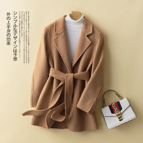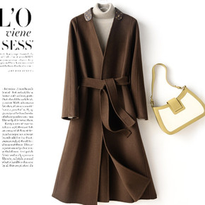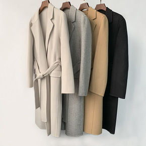100纯羊毛双面呢子羊毛大衣女2021秋冬新款中长...