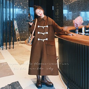 实拍咖色呢子大衣女中长款2021年冬季新款韩版连帽...