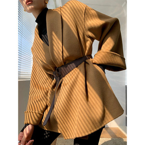 丝羊毛秋冬修身型收腰西装领外套套装...